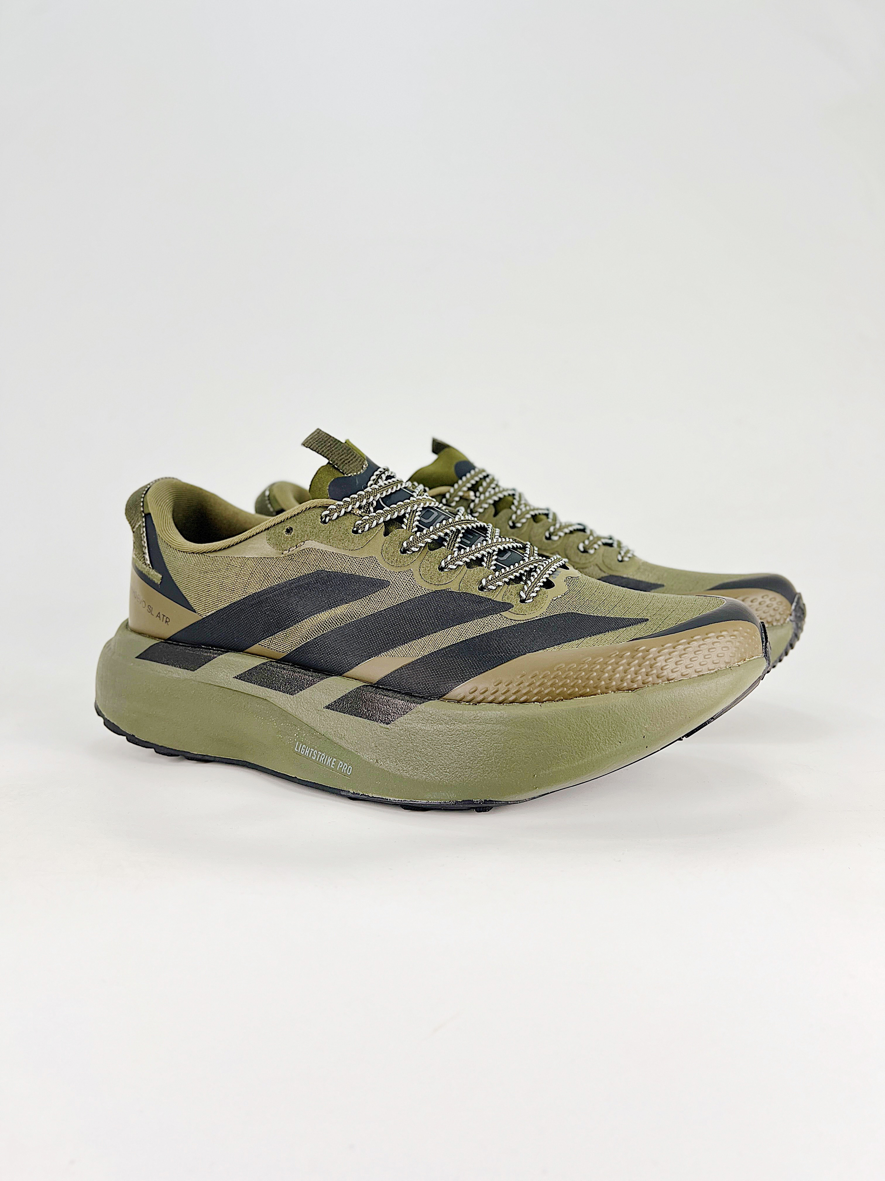 这款阿迪达斯ADIZERO EVO SL ART竞速跑鞋,采用透气针织鞋面搭载品牌标志性三道杠设计,搭载Lightstrike Pro缓震中底,提供出色的回弹缓震性能与轻量化脚感,军绿配色搭配黑色装饰线条,兼具专业运动性能与潮流穿搭属性,适合马拉松训练、日常长跑等场景。