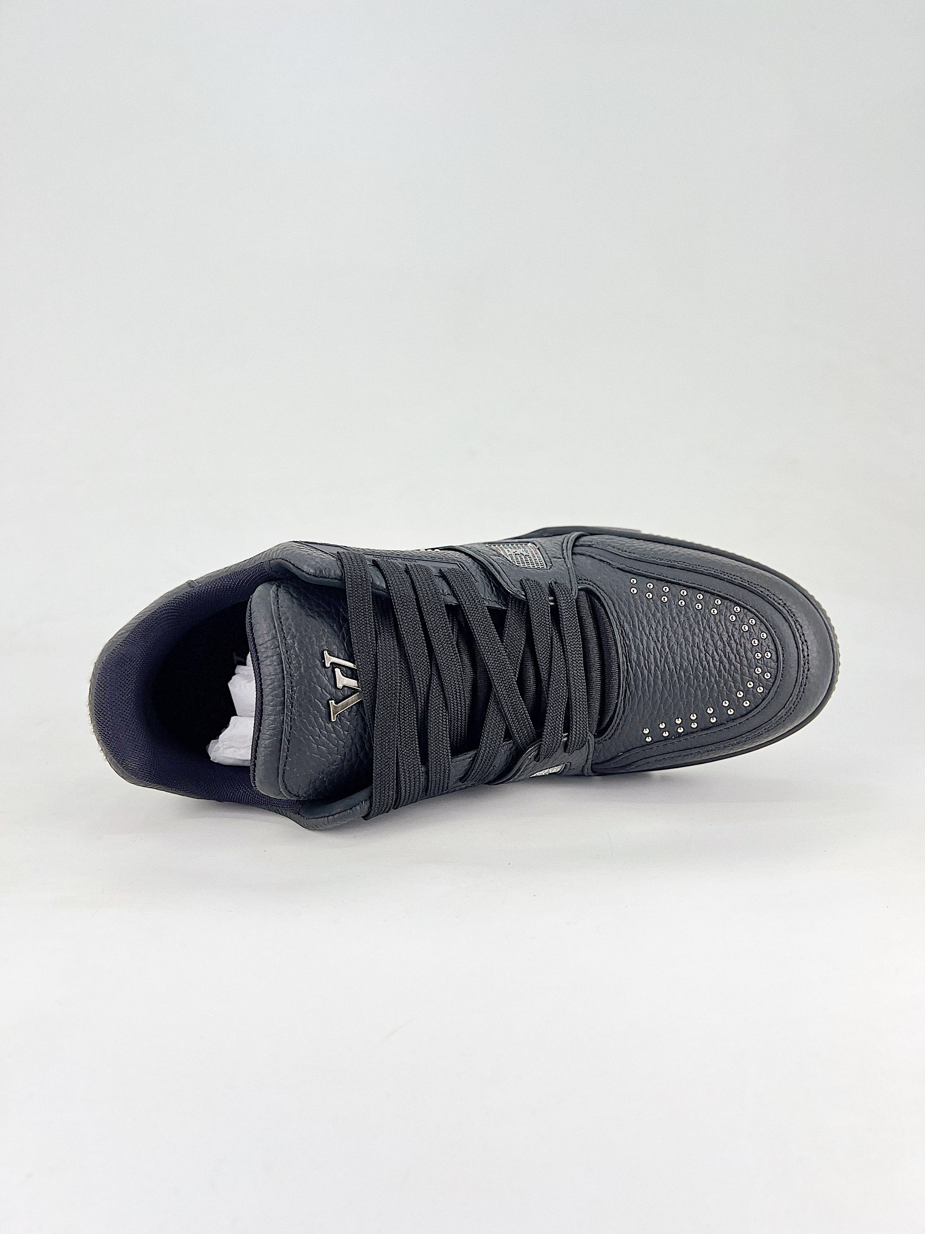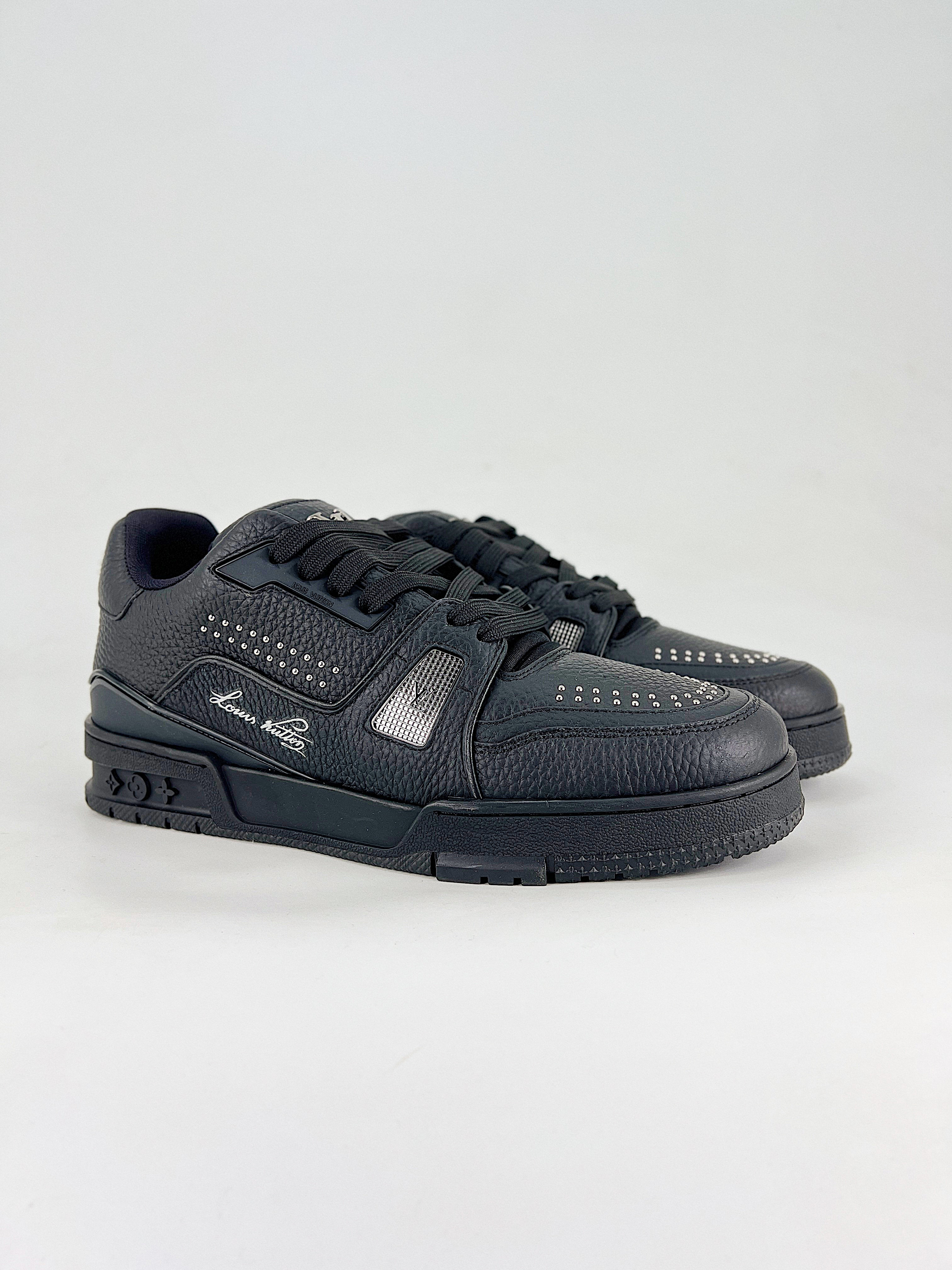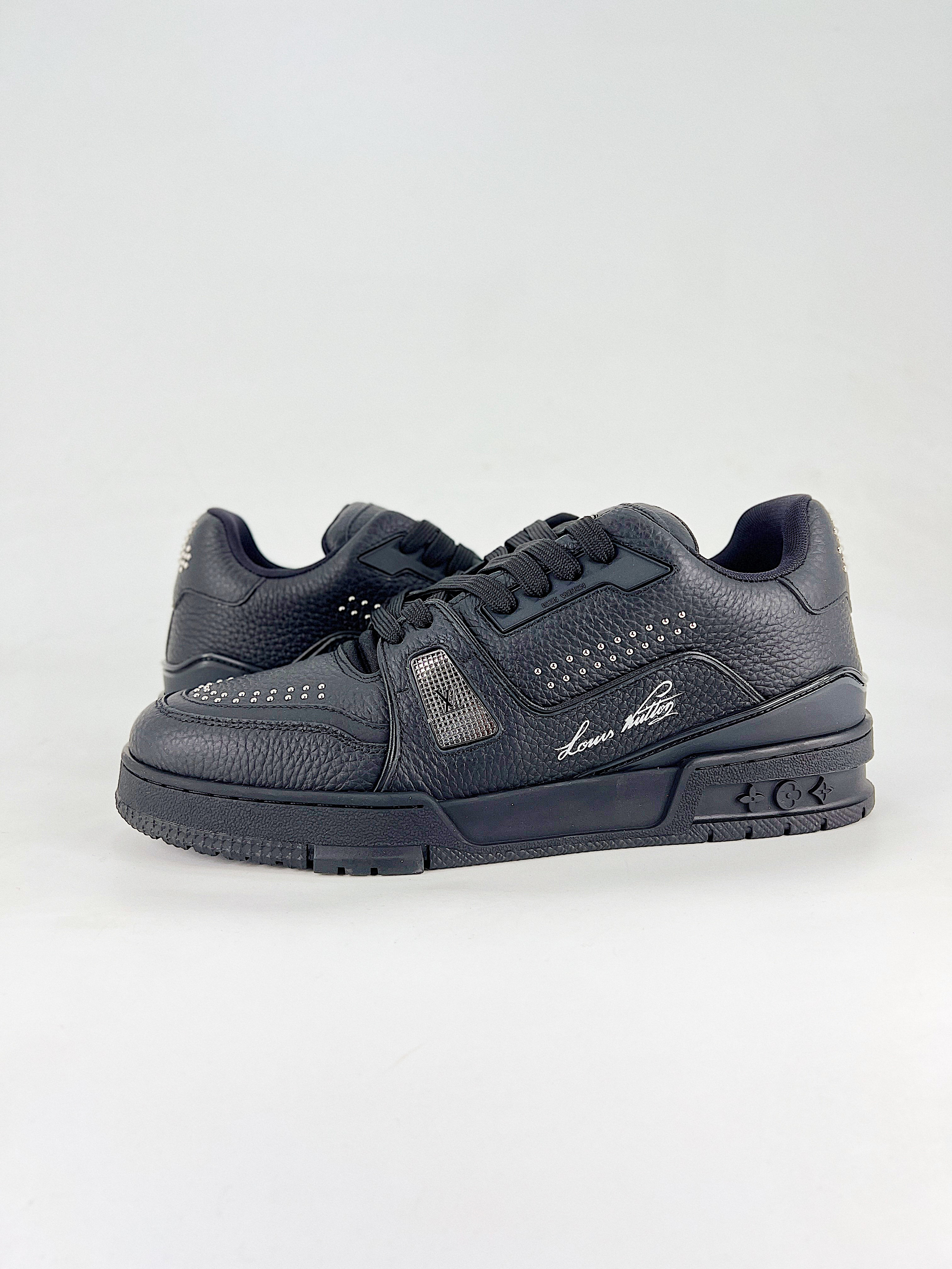 标签: LV经典板鞋 | 全黑荔枝纹 | 铆钉装饰 | 轻奢潮流 | 休闲穿搭