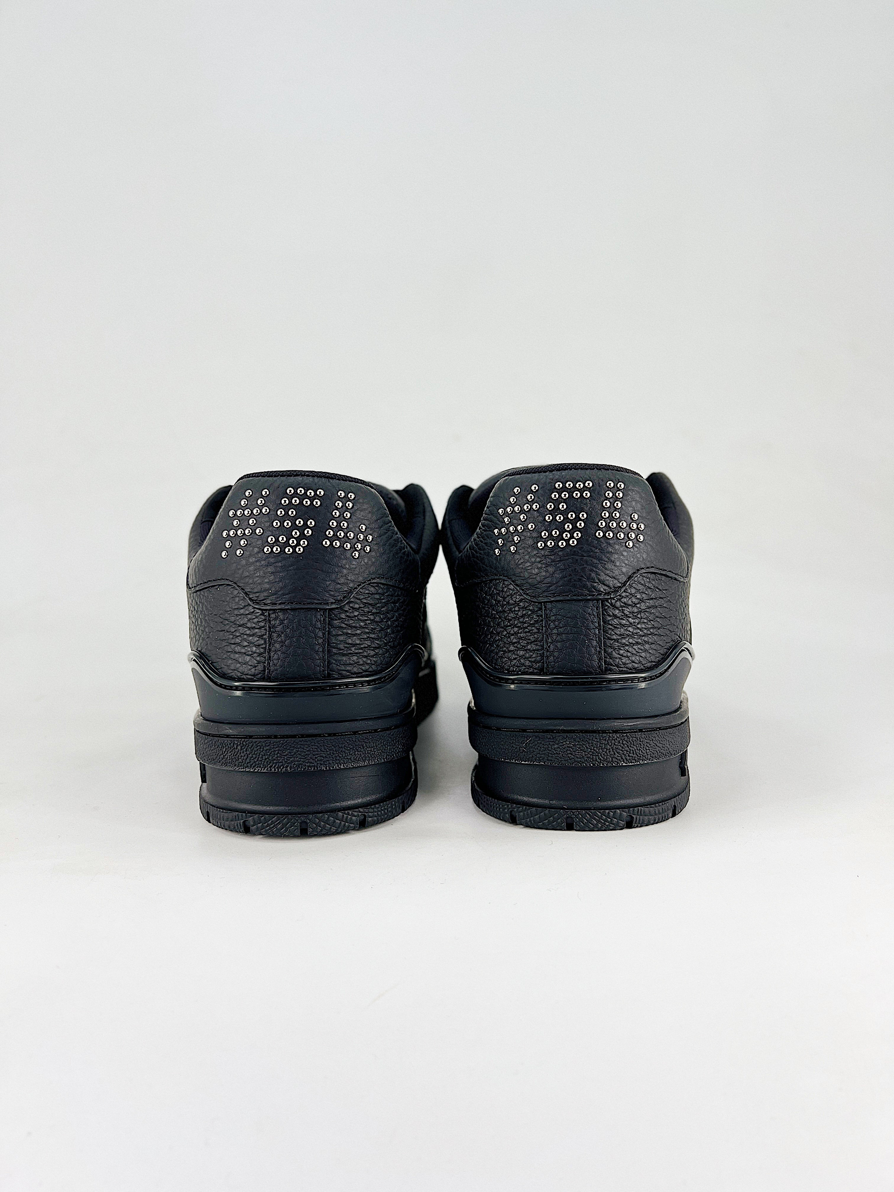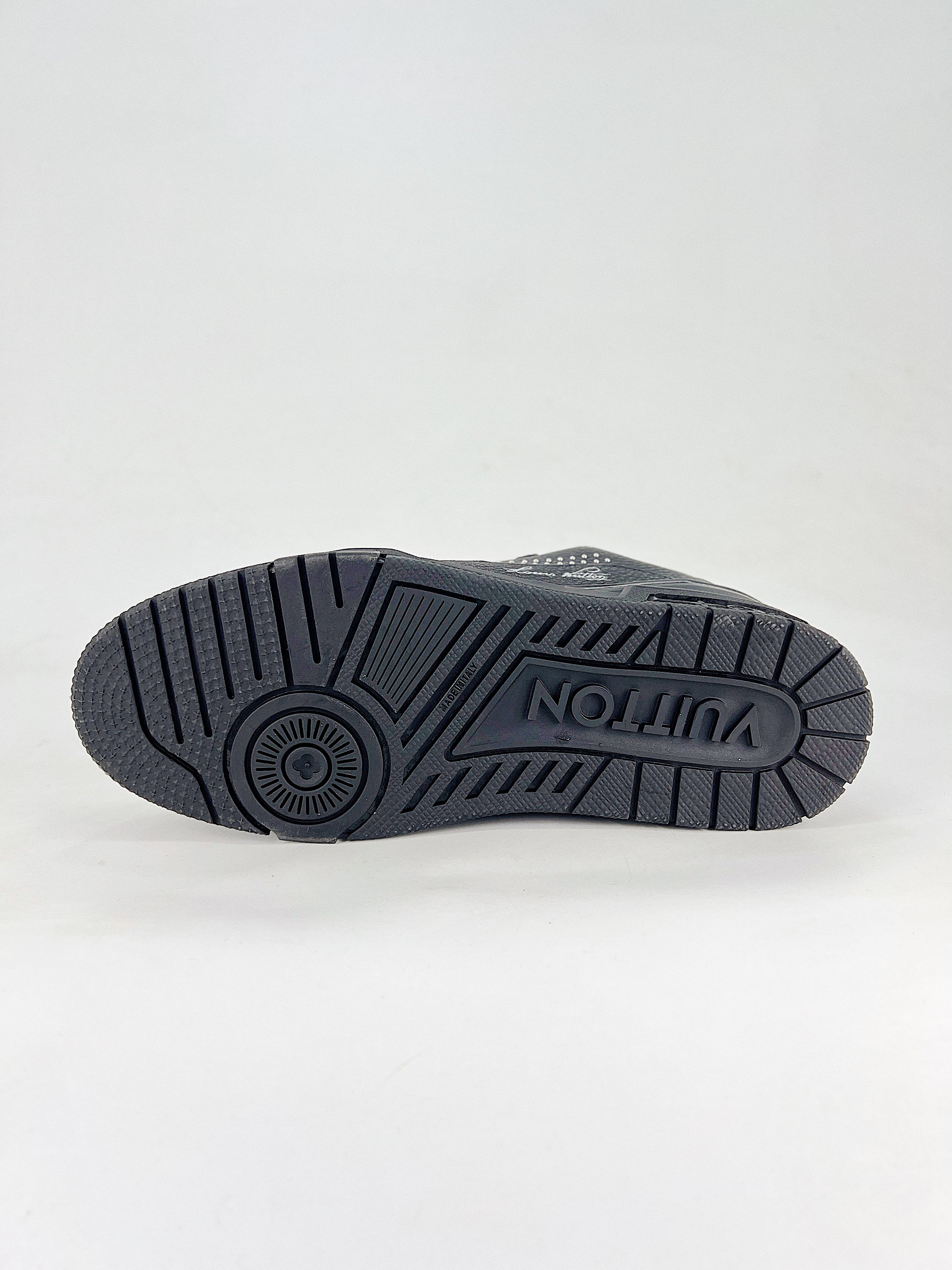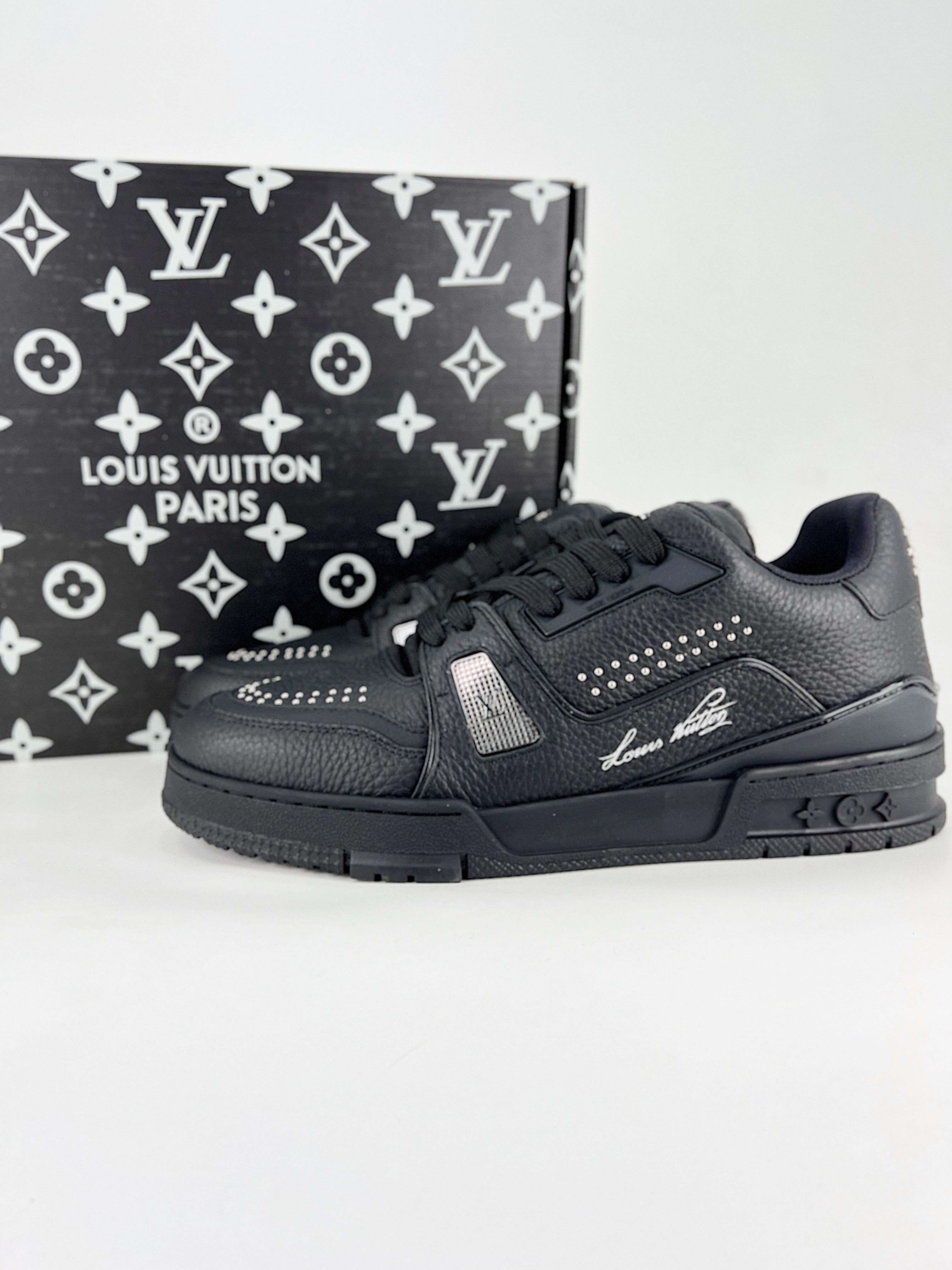 标签: LV经典板鞋 | 全黑荔枝纹 | 铆钉装饰 | 轻奢潮流 | 休闲穿搭