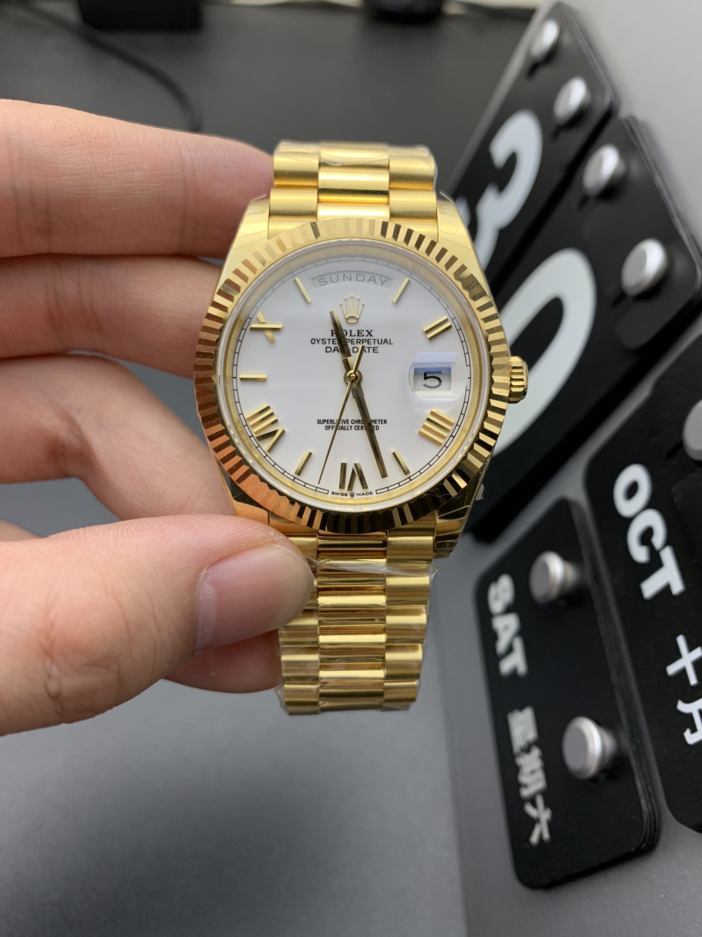 标签: 全金总统表带 | 坑纹牙圈 | 全自动机械 | 商务正装 | 奢华复刻