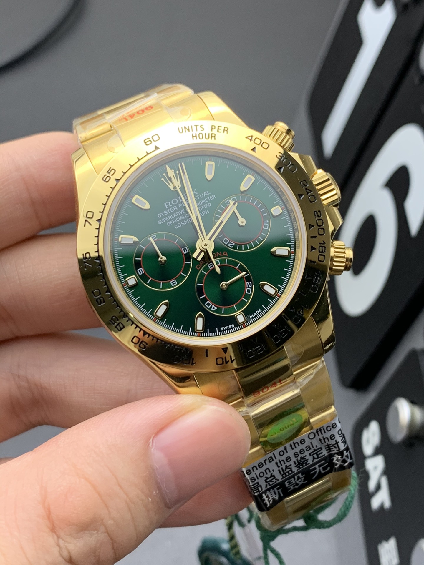 超A仿品劳力士宇宙计型迪通拿全金绿盘计时腕表