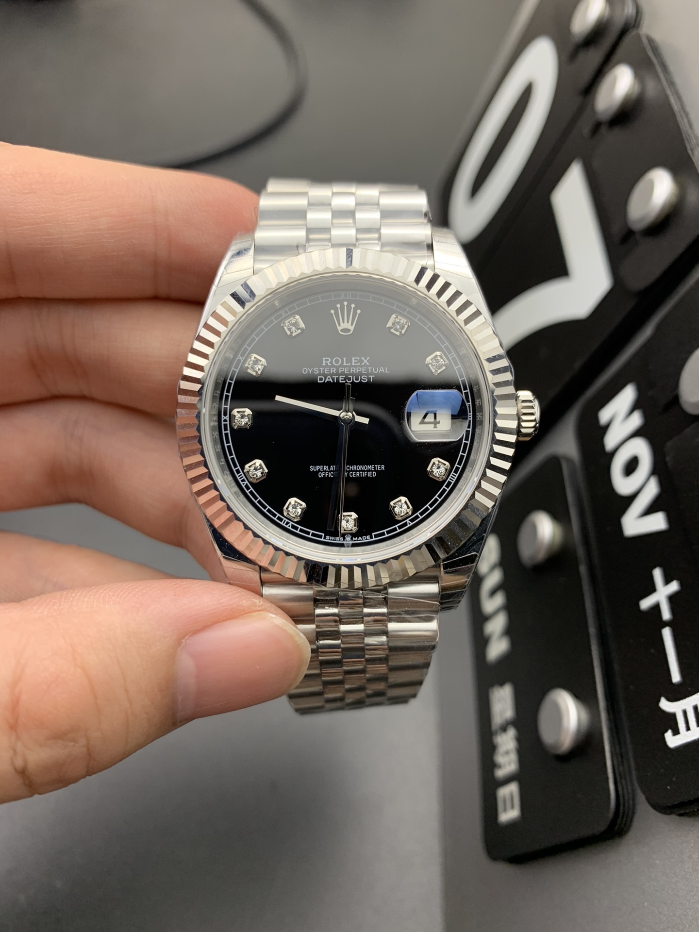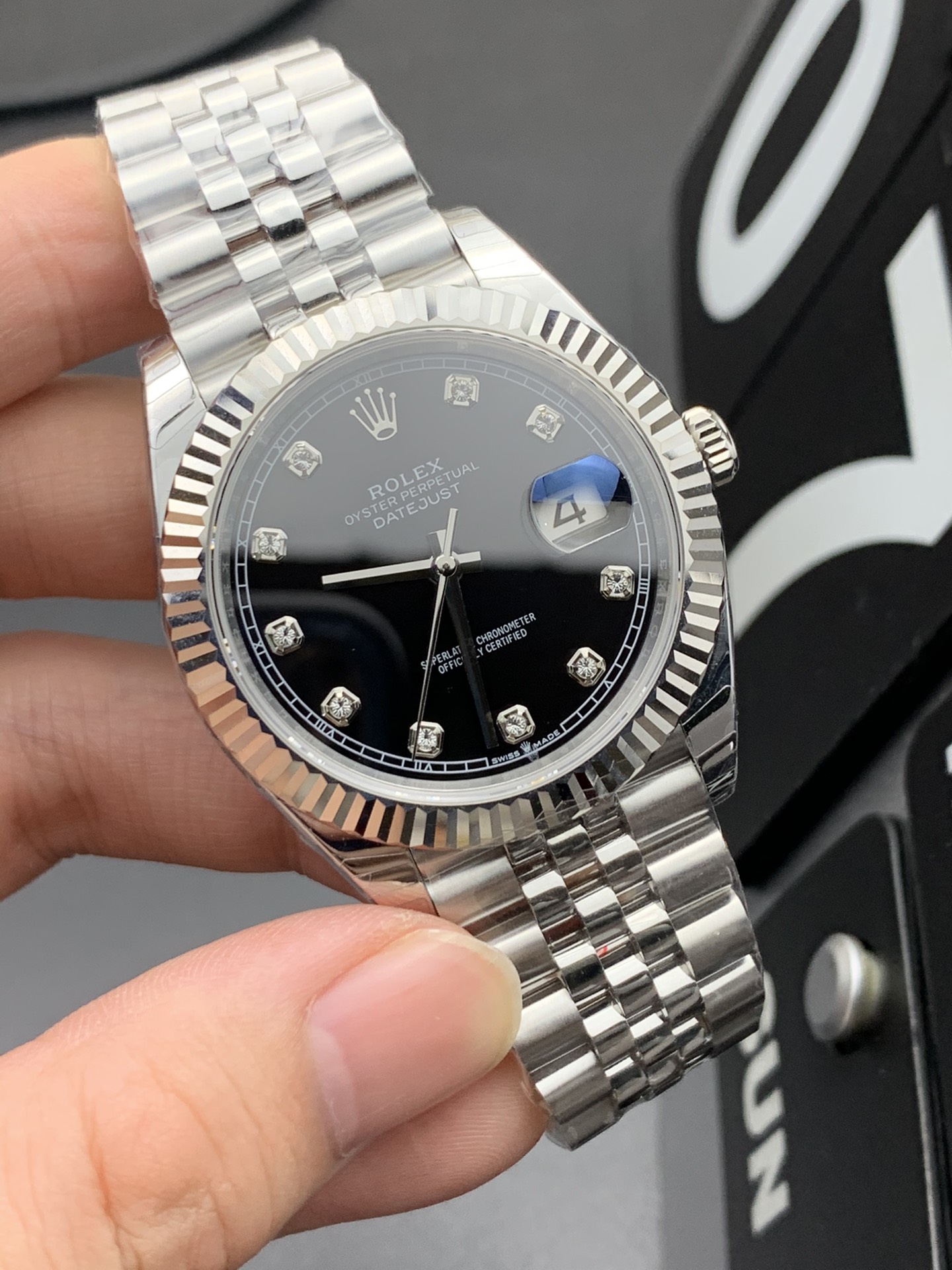 经典高端日志型腕表,采用904L精钢五珠链表带,坑纹表圈搭配亮面黑色钻石时标表盘,搭载恒动自动上链机芯,通过瑞士天文台认证,内置日期显示窗口,兼具优雅商务质感与日常穿搭属性,尽显轻奢腕表格调。