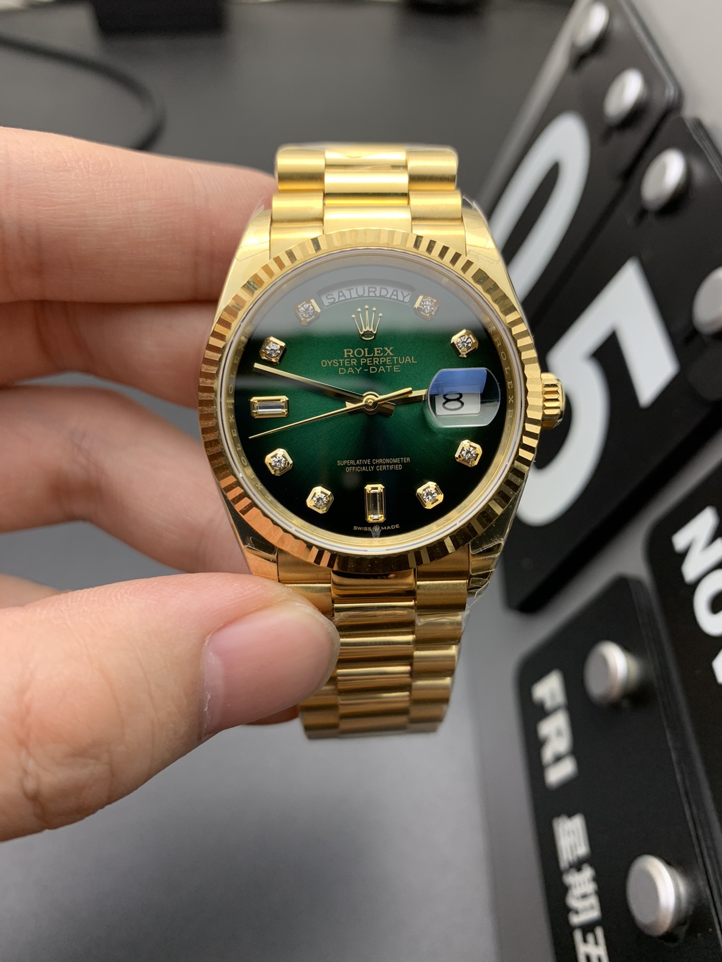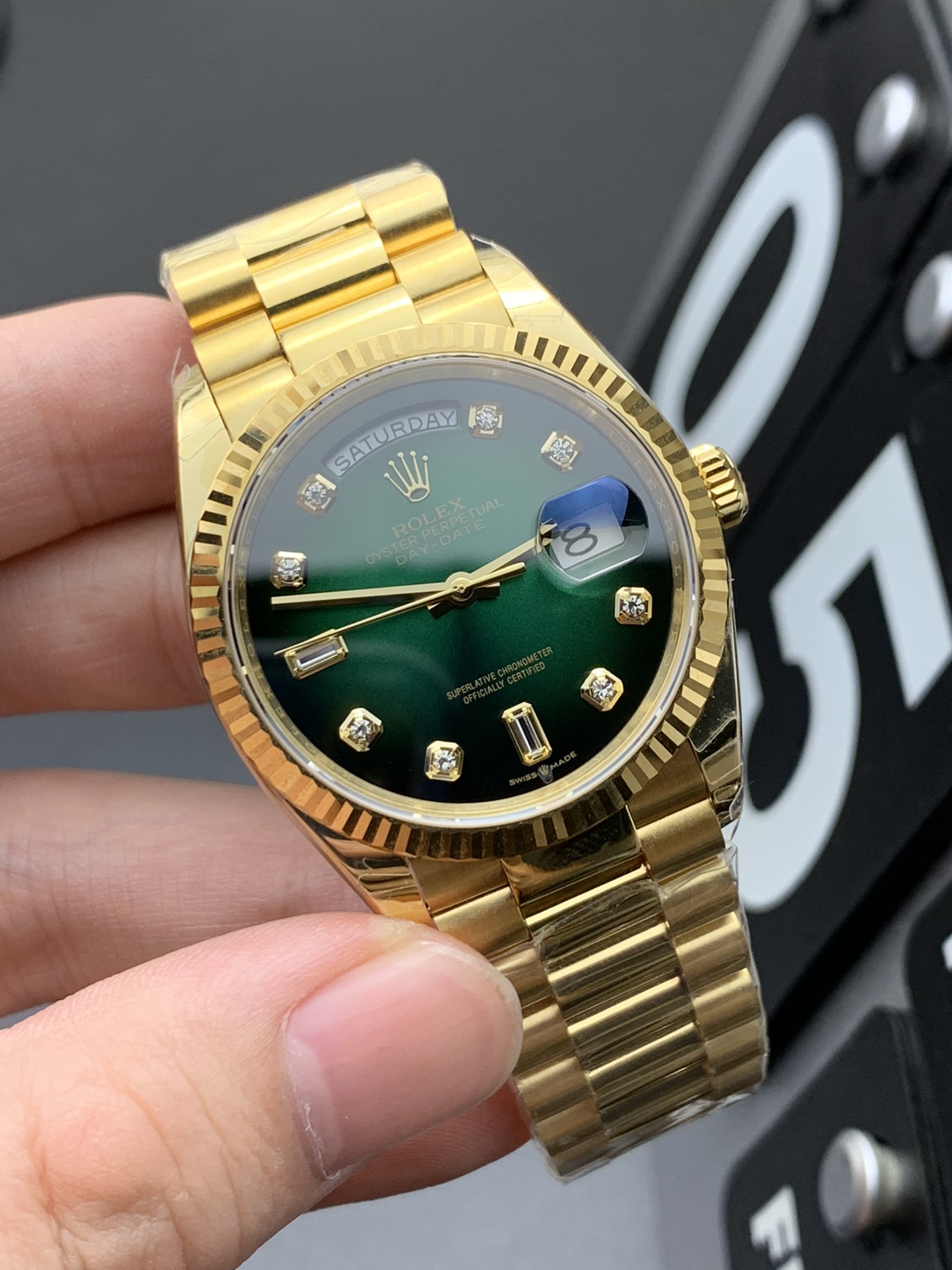 劳力士星期日历型渐变绿盘镶钻18K黄金腕表