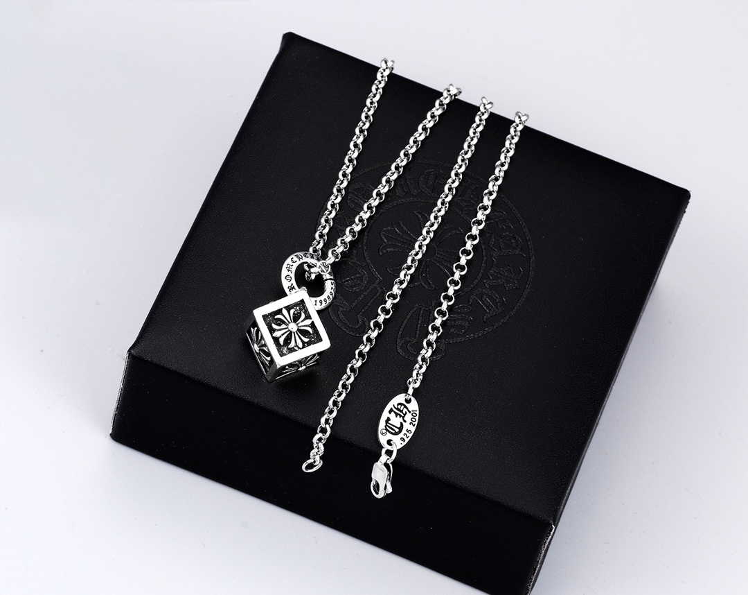 采用925纯银打造,做旧复古工艺处理,方形吊坠带有经典克罗心十字架镂空雕花设计,搭配加粗款O字银链,链条带有品牌专属标识吊牌,细节质感拉满,适配朋克、复古等多种穿搭风格,日常通勤或潮流出街皆可佩戴。