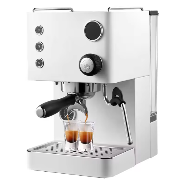 极简纯白外观设计,搭载精准意式浓缩萃取模块,配备可调节蒸汽奶泡杆打造绵密奶泡,内置压力仪表实时监测萃取压力,搭配1.8L大容量透明水箱,支持双杯同时萃取,一键操作即可制作浓缩咖啡、拿铁、美式等多款饮品,适配家庭日常与小型商用场景,为咖啡爱好者带来专业门店级口感。